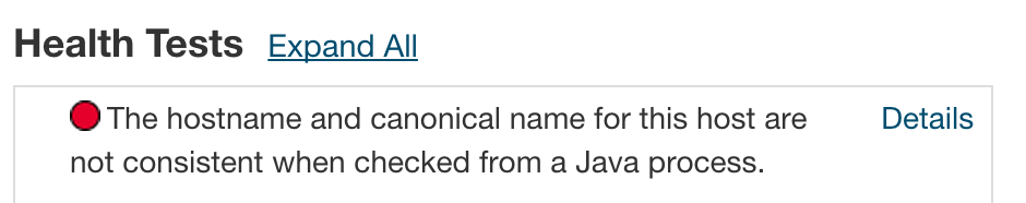 In this case, you need to identify whether the health test failure is caused by the Hostname and Canonical Name Health Check for the MGMTHostname host, which might look like this: