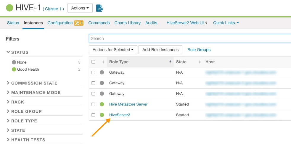 Figure 1. HiveServer2 Link on the Cloudera Manager Instances Page