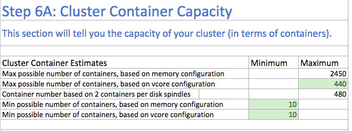 Step 6A lets you validate the minimum and maximum number of containers in your cluster, based on the numbers you entered.