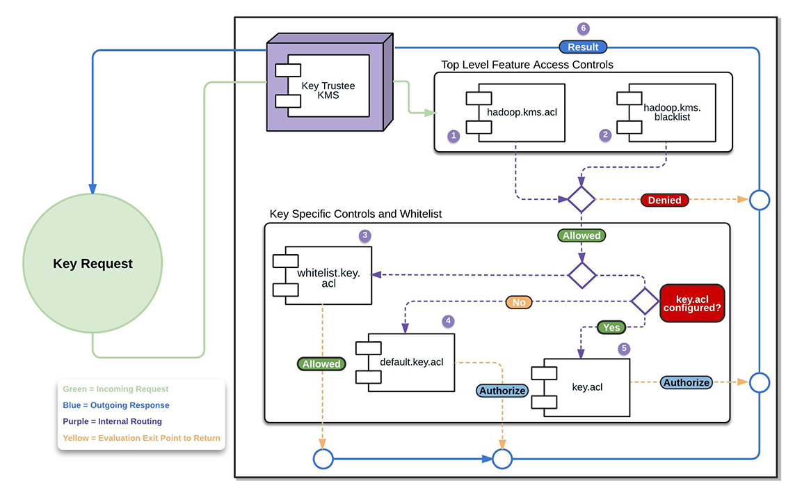 ACLs are implemented in the upstream Hadoop KMS and apply to any variant of the service, whether it is through Key Trustee Server (KTS), the Java Keystore (JKS), or the HSM KMS. Understanding how these ACLs are defined and work enables you to more accurately create ACLs that meet both your needs and the needs of your customers.