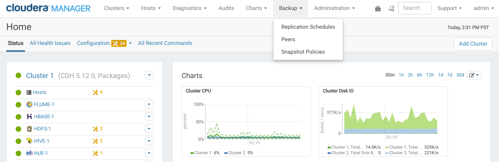 - Log in to Cloudera Manager Admin Console on the backup cluster.