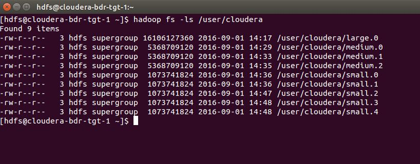 Verify that the HDFS files are now on the backup cluster by using the HDFS File Browser or the hadoop fs -ls command (shown below):
