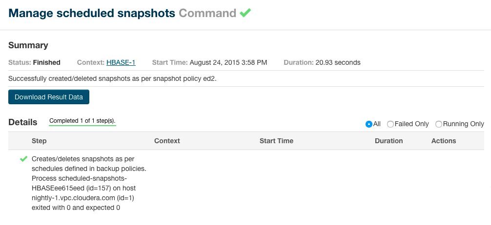 See Managing HDFS Snapshots and Managing HBase Snapshots for more information about managing snapshots.