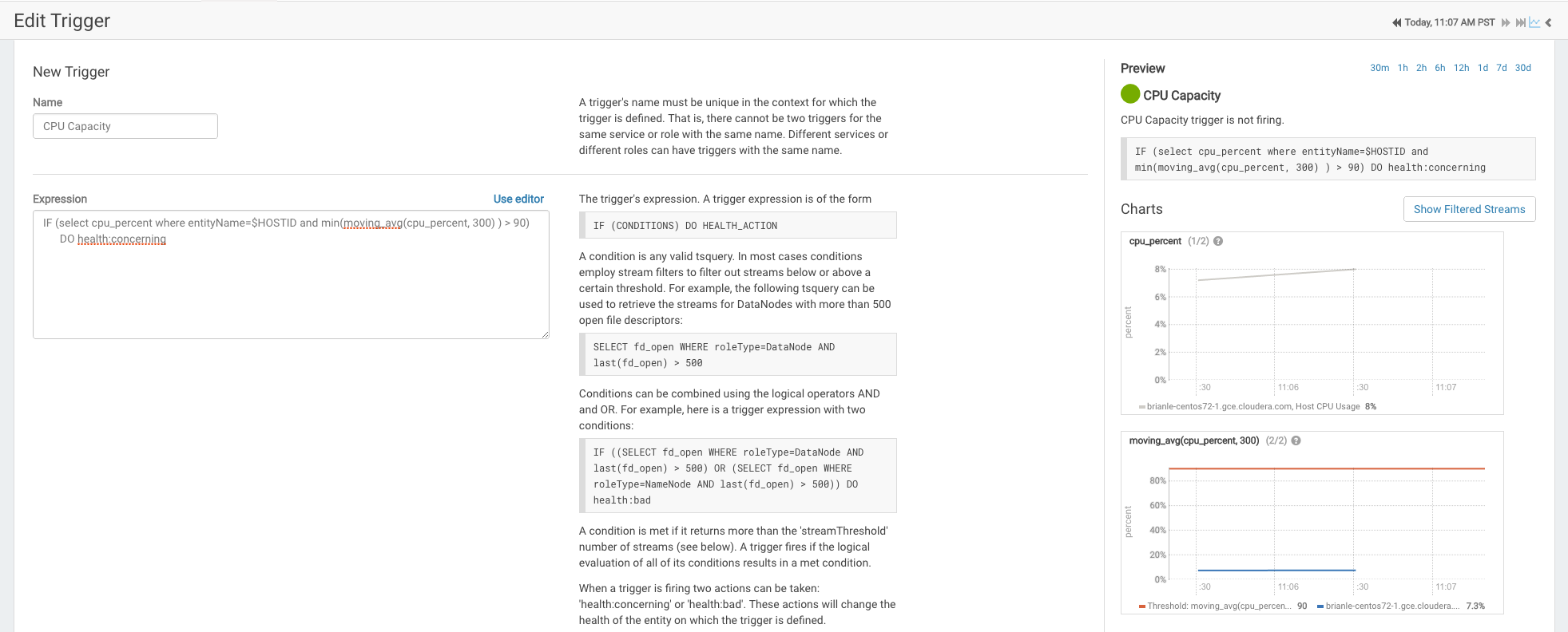 Cloudera Manager allows you to monitor cluster performance. Some indicators require timely attention to keep your data safe. Triggers let you track occurrence and severity of issues so that you can fix problems before they result in system failures.
