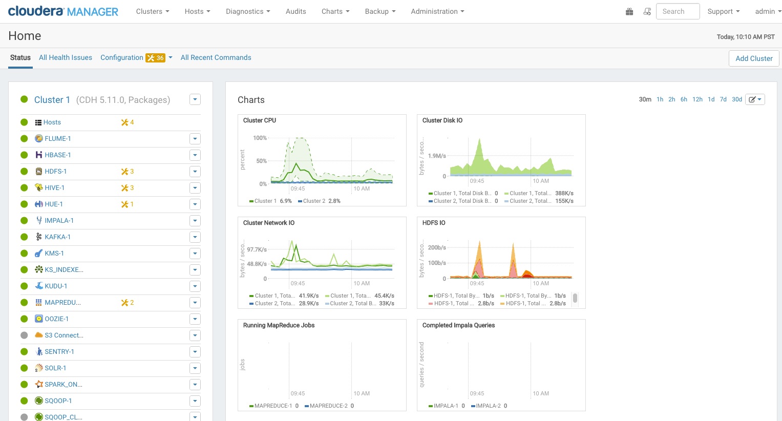 see Deprecated Items.To begin testing, start the Cloudera Manager Admin Console. Once you've logged in, the Home page should look something like this: