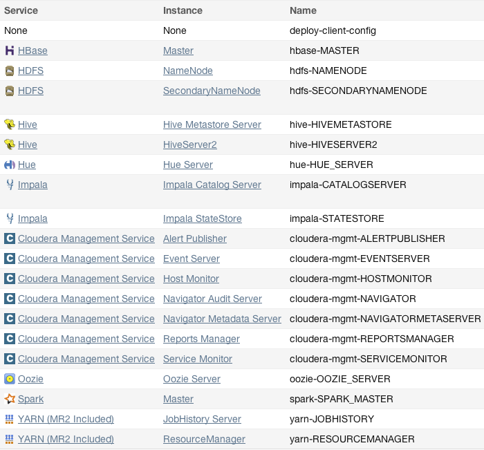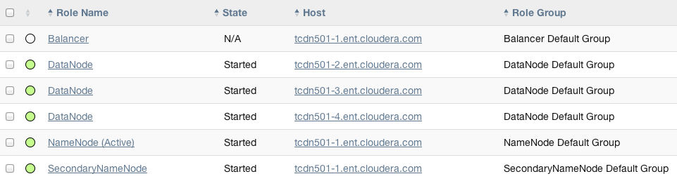 hosts. In addition to the CDH "master" role instances, tcdn501-1 also has Cloudera Management Service roles: