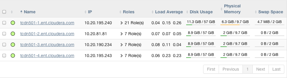 Consider a cluster Cluster 1 with four hosts as shown in the following listing from Cloudera Manager: