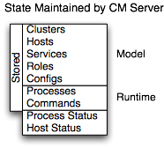 The Cloudera Manager Server maintains the state of the cluster. This state can be divided into two categories: "model" and "runtime", both of which are stored in the Cloudera Manager Server database.