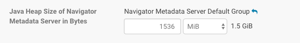 | Java Heap Size of Cloudera Navigator Metadata Server in Bytes | 1536 MiB (1.5 GiB) | Increase Java heap size temporarily during an upgrade. Increase Java heap size for large Solr indexes. See Estimating Optimal Java Heap Size Using Solr Document Counts for details. |