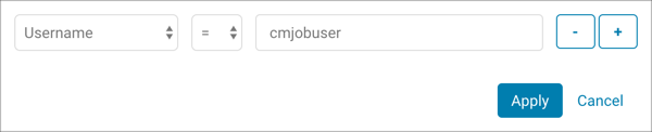 5. Click Apply. The filter is applied to the audit events and the list displays only those events for the selected username.
