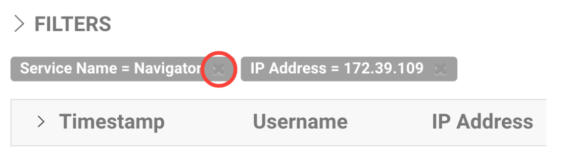 For example, to see the events listed for Navigator, enter Service Name = Navigator.