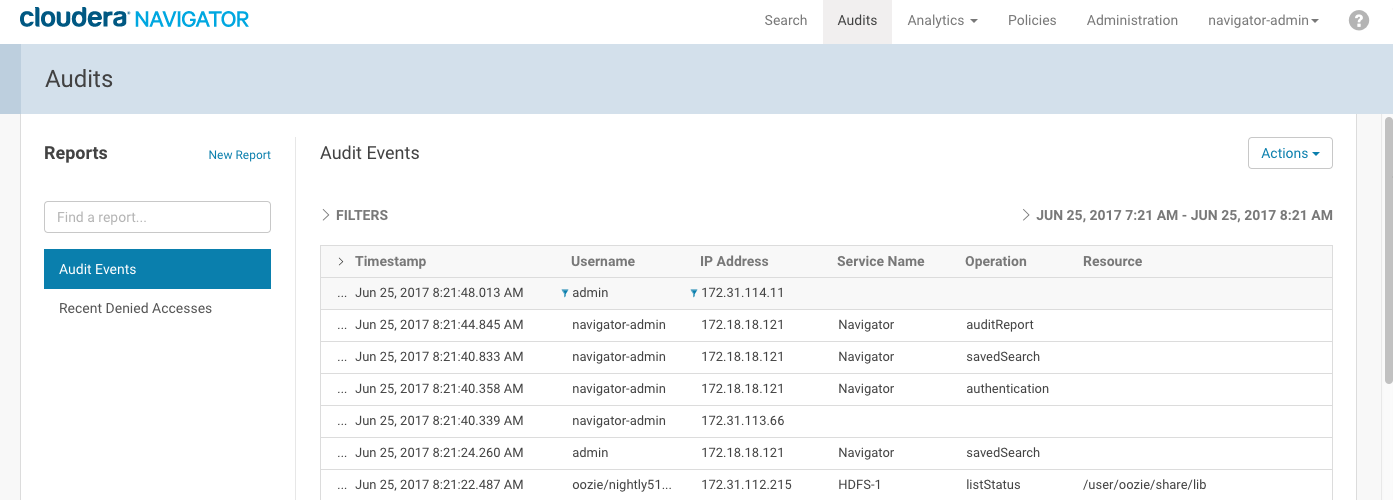 | << Using Audit Events to Understand Cluster Activity | ©2016 Cloudera, Inc. All rights reserved | Cloudera Navigator Audit Event Reports >> |