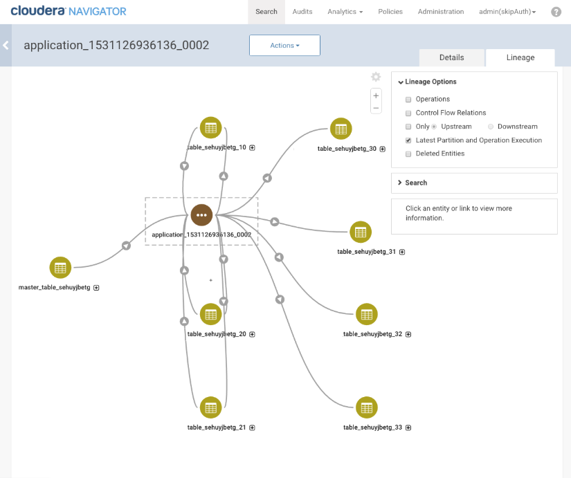 Navigator shows lineage diagrams for operations performed by compute engines such as MapReduce v1, YARN (MRV2), or Spark (all Spark 1 versions and Spark 2 starting with version 2.3). Lineage reflects data processed using Spark SQL, including the Datasets/Dataframe APIs. Other services such as Apache Sqoop contribute metadata that Navigator can use to create lineage diagrams as well.