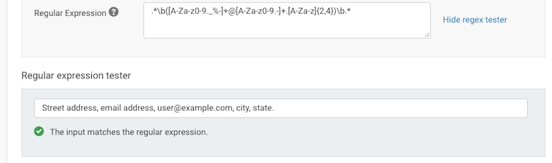 - In the Regular Expression field, edit the expression. Click Show regex tester to test input against any changes you make.