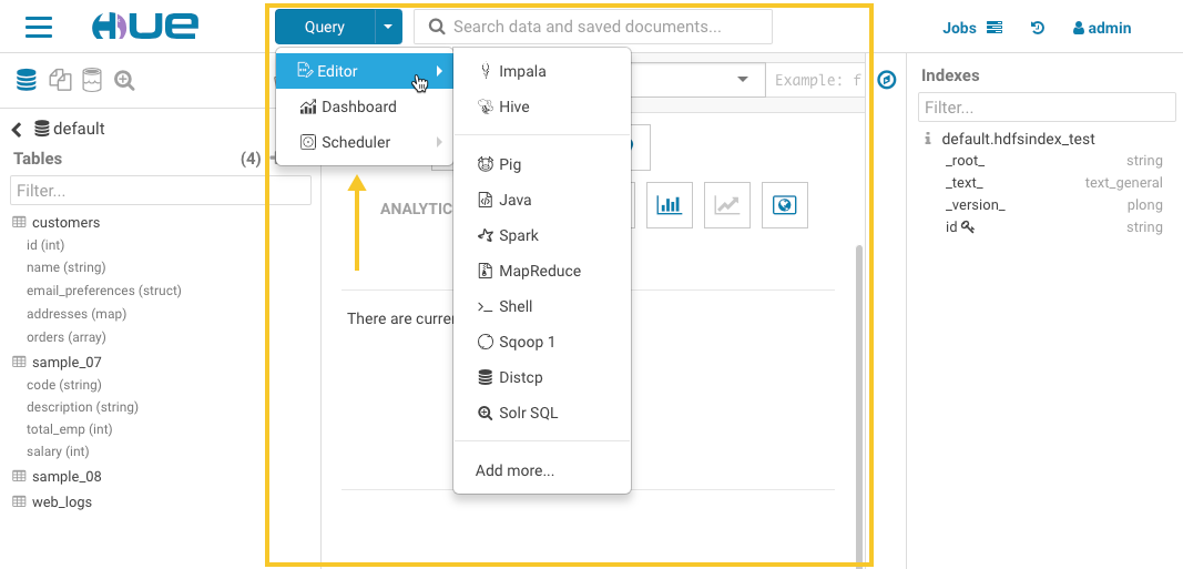 - Discover indexes and HBase or Kudu tables