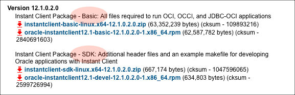 - Download zip files for Instant Client Package, Basic and SDK (with headers).