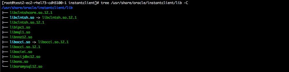 # Create nested directories: /usr/share/oracle/instantclient/lib/ mkdir -pm 755 /usr/share/oracle/instantclient/lib # Unzip. The files expand into /usr/share/oracle/instantclient/instantclient_<ver>/ unzip '*.zip' -d /usr/share/oracle/instantclient/ # Move lib files from instantclient_<ver> to /usr/share/oracle/instantclient/lib/ mv /usr/share/oracle/instantclient/`ls -l /usr/share/oracle/instantclient/ | grep instantclient_ | awk '{print $9}'`/lib* /usr/share/oracle/instantclient/lib/ # Move rest of the files to /usr/share/oracle/instantclient/ mv /usr/share/oracle/instantclient/`ls -l /usr/share/oracle/instantclient/ | grep instantclient_ | awk '{print $9}'`/* /usr/share/oracle/instantclient/ # Create symbolic links. Remember to edit version numbers as necessary cd /usr/share/oracle/instantclient/lib ln -s libclntsh.so.12.1 libclntsh.so ln -s libocci.so.12.1 libocci.so