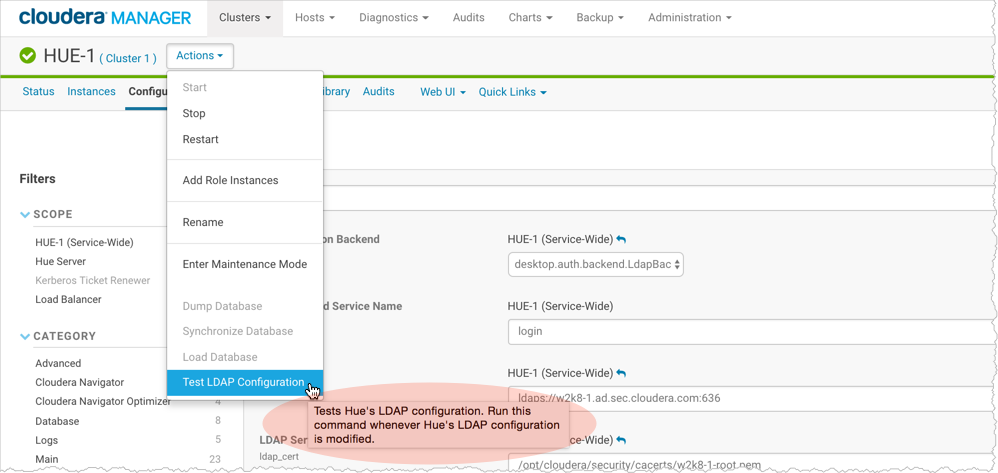 authentication (you can log on to Hue without it), but to Synchronize Hue with LDAP Server.Test Hue LDAP Configuration On-the-Fly