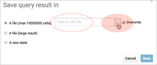 - Select In store (max 10000000 cells) and open the Path to CSV file dialog.