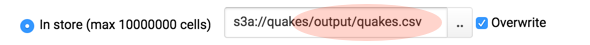 - Click Save. The results are saved as s3a://quakes/output/quakes.csv.