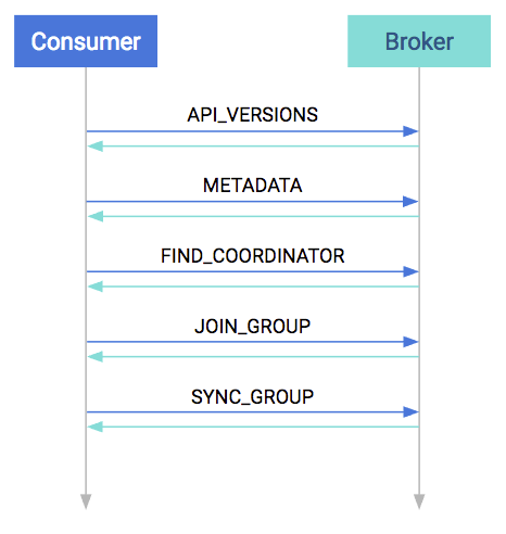 At startup, the first step is to match protocol versions. It is possible that the broker and the consumer are of different versions (the broker is older and the consumer is newer, or vice versa). This matching is done by the API_VERSIONS request.