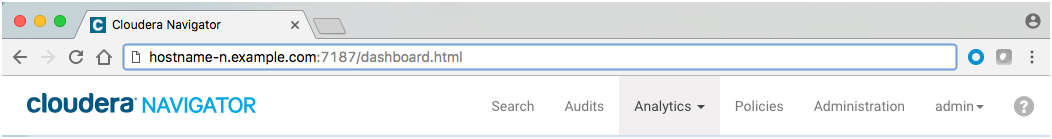 Open the Cloudera Navigator console in a browser at port 7187 on the host where the Navigator Metadata Server instance is running: