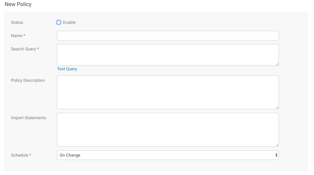 - For a policy that includes Java expressions, enter the classes that the expressions will use in the Import Statements field. See Metadata Policy Expressions for details, including examples and a class reference.