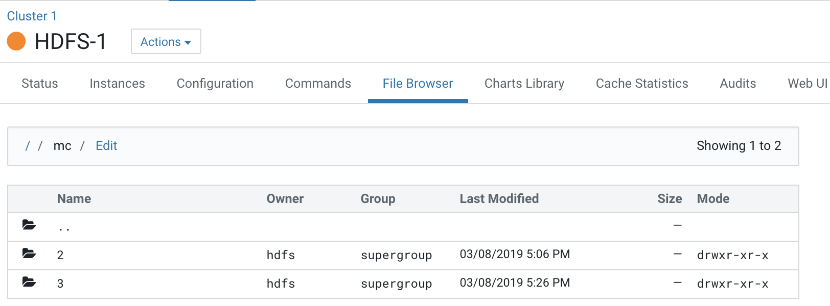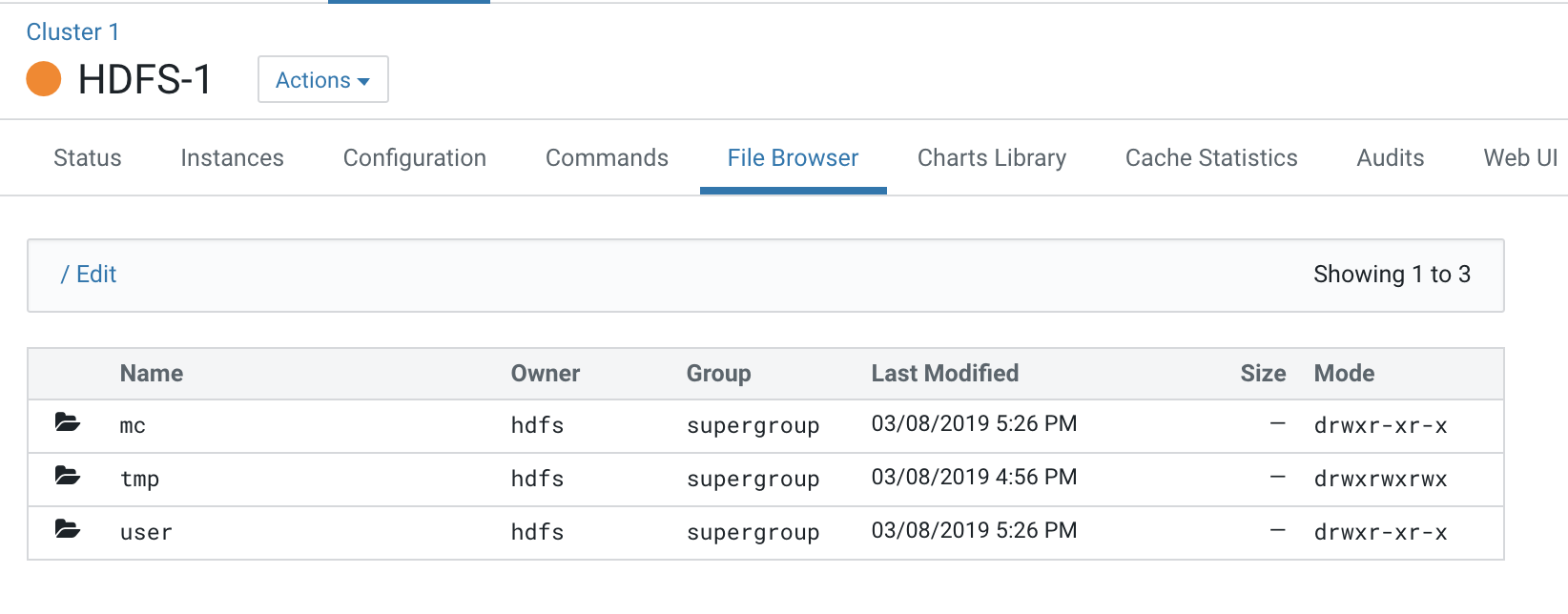 - Open the Cloudera Manager Admin Console and view the HDFS hierarchy on the Base cluster HDFS service by opening the File Browser: .