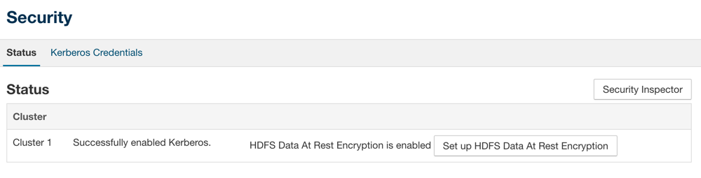 This shows at a glance that both Kerberos and HDFS transparent encryption have been configured for this cluster.